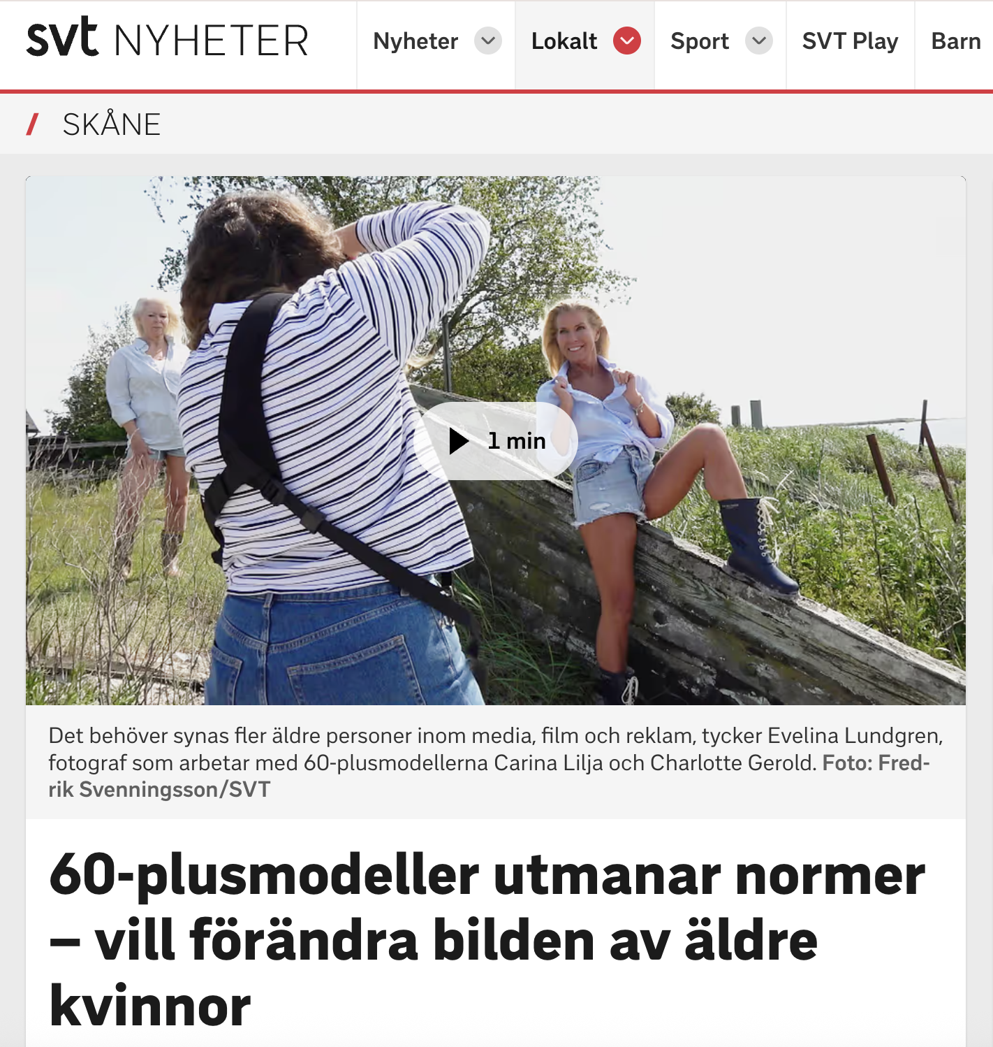Jag är stolt över att mitt projekt tillsammans med modellerna Charlotte Gerold och Carina Lilja har uppmärksammats av SVT.